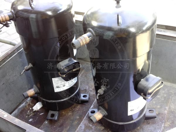 型號為C-SBN523H8H的三洋渦旋壓縮機,根據(jù)頂部鋼印可知,線圈供電為三相,定頻頻率60Hz時工作電壓為交流440V,線圈與外殼(地)正常阻值大于2MQ。拔下吸氣管和排氣管的封塞,將3根引線安裝在新壓縮機接線端子上,上電開機壓縮機運行,吸氣管有氣體吸入,排氣管有氣體排出,此時壓縮機制冷正常。